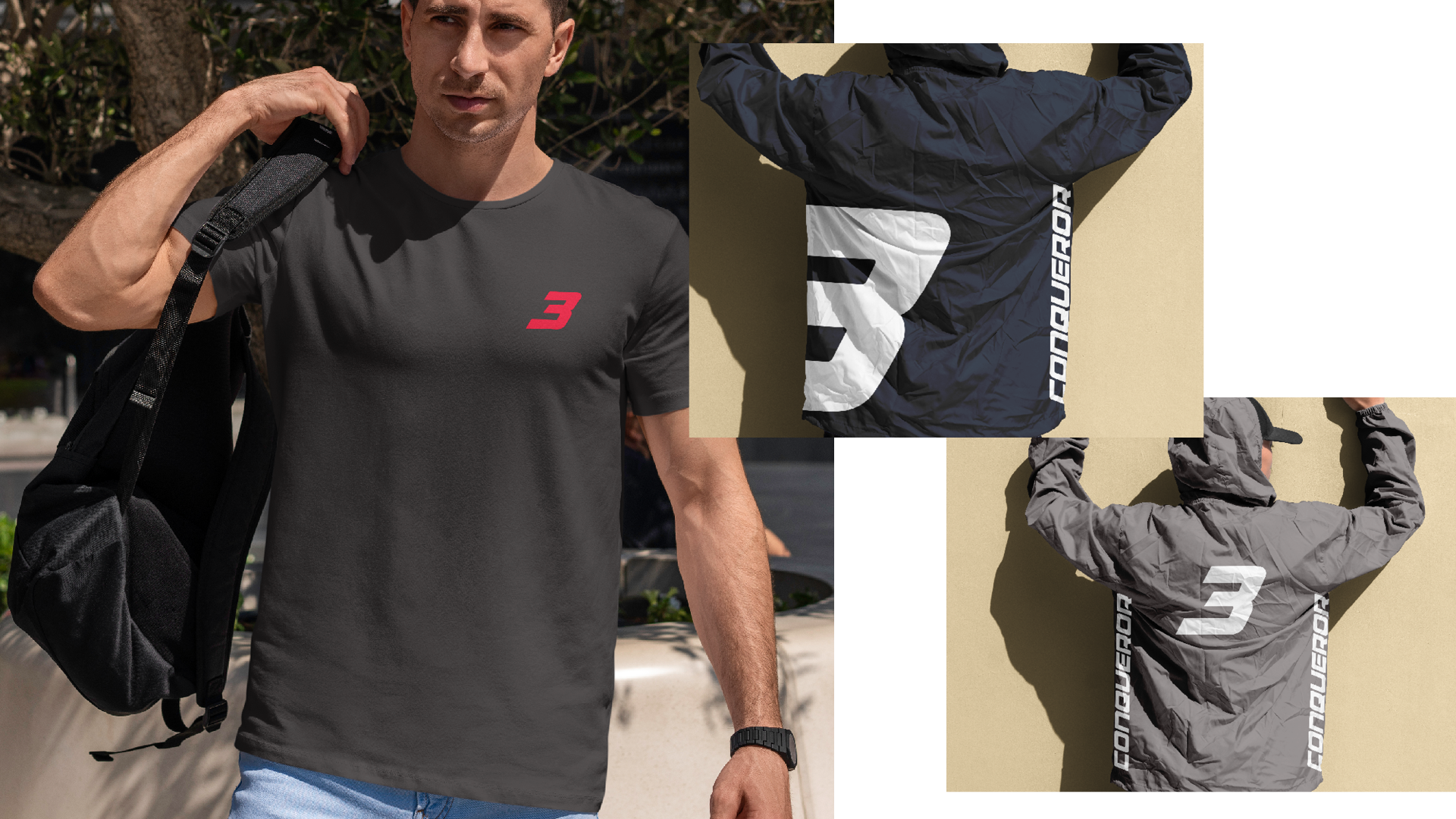 The brand messaging system was applied across the full apparel range of hoodies, tees, shorts, jackets, headwear, and accessories. Each piece carries a motivational word, ensuring the brand identity is worn, not just seen.