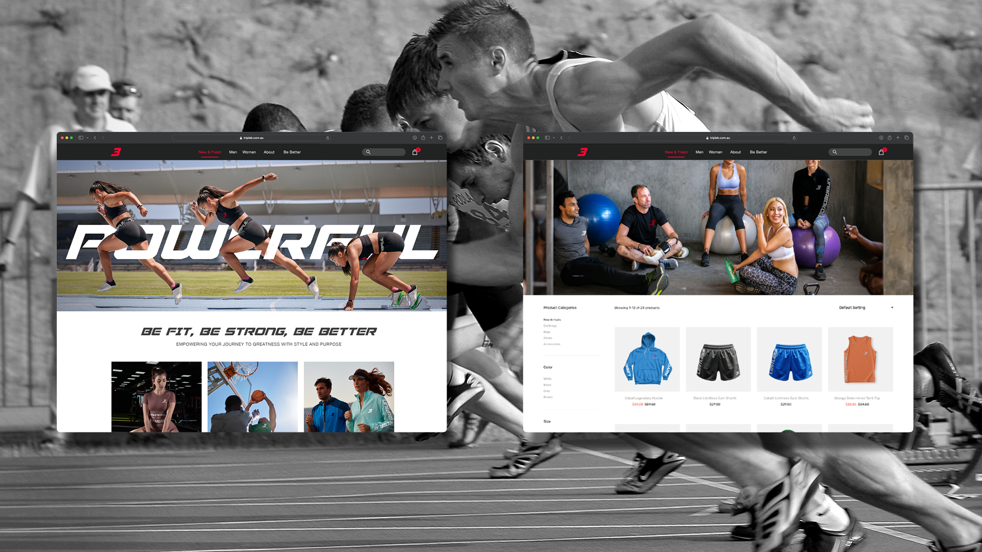 The Triple B website was designed to match the energy of the brand bold hero imagery, strong typographic headlines, and a clean product browsing experience built to convert.