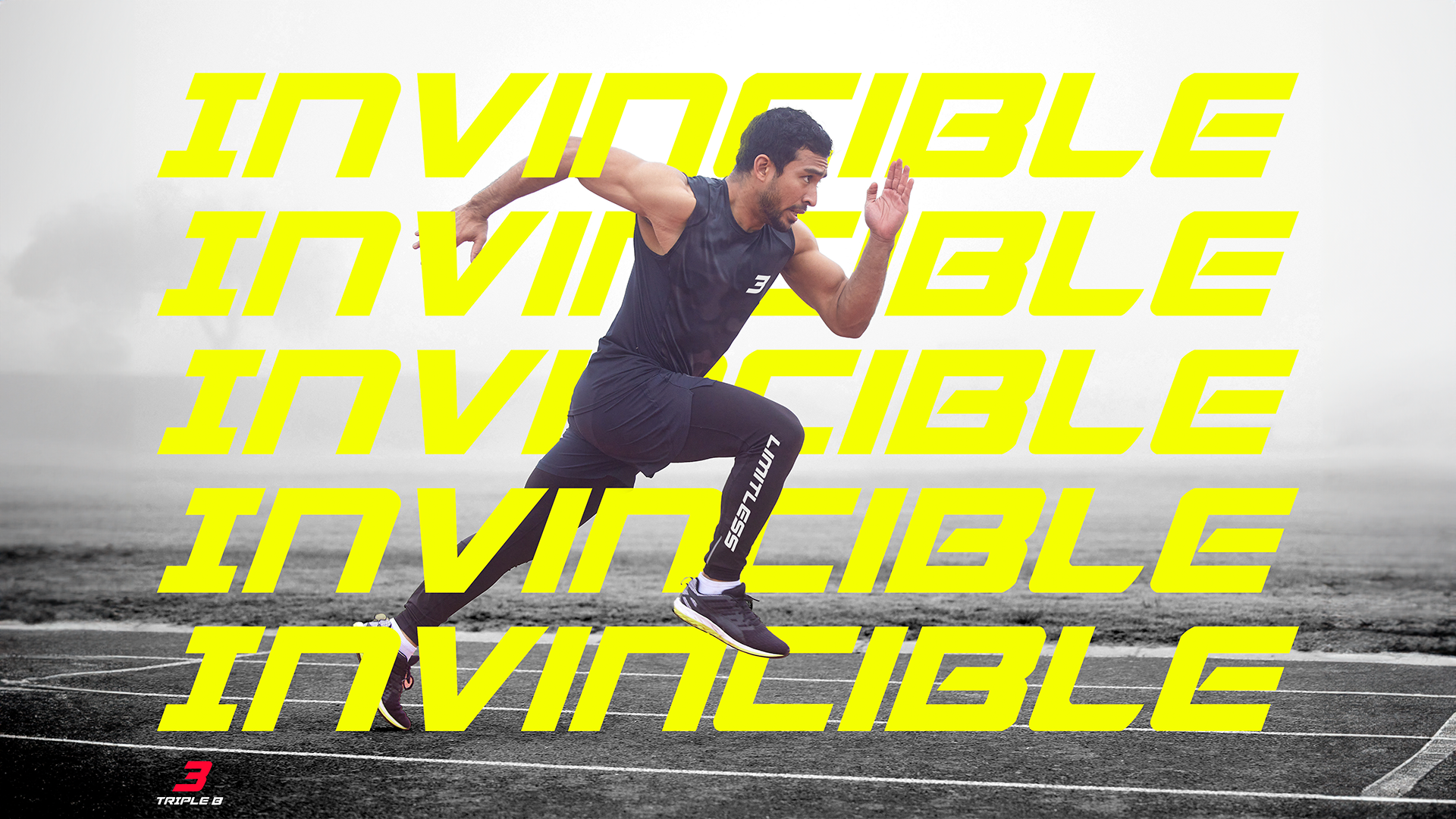 The visual campaign was designed to feel raw and athletic, high contrast black and white photography with bold typographic overlays. The art direction deliberately avoids the polished perfection of mainstream sportswear, instead leaning into grit and movement.